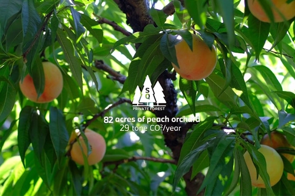 Our 82-acre (500 mu) peach orchards sequester 29 tons of CO2 annually.
